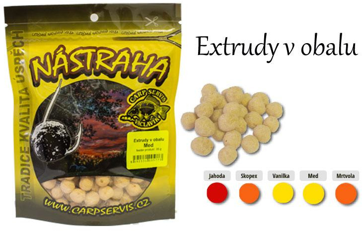 Extrudy v obalu jsou speciální měkkou nástrahou s prodlouženou trvanlivostí nastražení. Po vhození do vody se náhle projasní a zesílí jejich barva, která se pak stává jedním z důležitých aspektů rybolovné úspěšnosti.