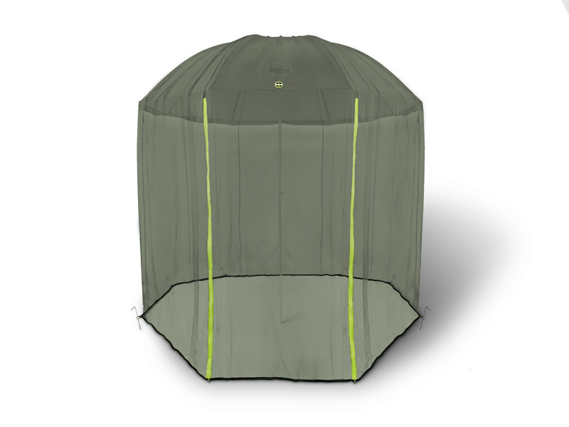 DELPHIN AntiFLY 250cm je vysoce efektivní ochrana na březích zamořených dotěrným hmyzem! Speciálně navržená moskytiéra, kterou je díky univerzálním rozměrům možné uchytit na drtivou většinu rybářských deštníků. Systém uchycení spočívá centrálním otvorem pro špic deštníku a v 8 kolících, které jsou součástí balení.