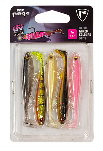 FOX RAGE Sada gumových nástrah Ultra UV Slick Shad Mixed Colours 5ks 9cm - ultra UV nástrahy vám poskytnou vizuální výhodu při vašem lovu – nyní dostupné také v multi-barevných baleních.
