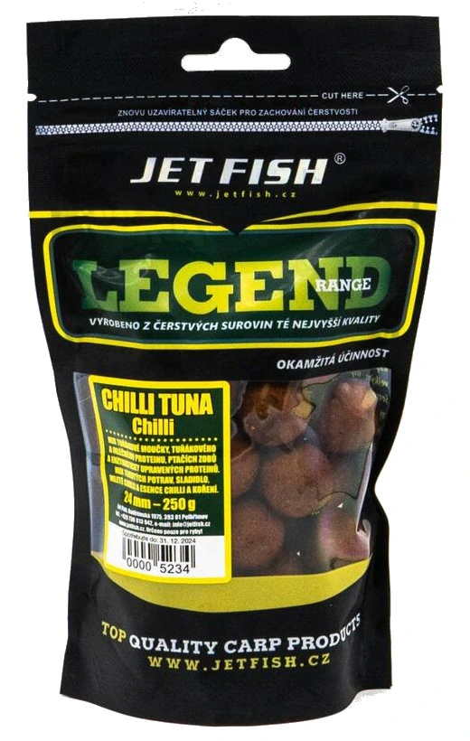 JET FISH Boilie Legend Range Chilli Tuna 250gr 24mmSkladem92 Kč/ ks82 Kč bez DPH