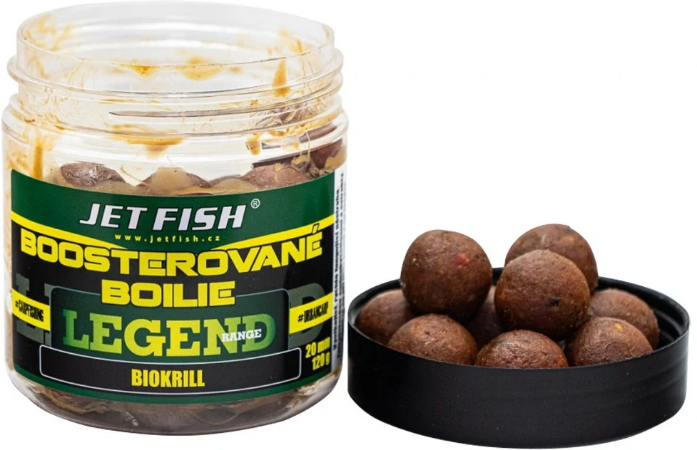 Boosterované boilies JET FISH Legend Range Biokrill je vynikajicí, rychle fungující nástraha, která je zatraktivněna aminokyselinami a esencemi.