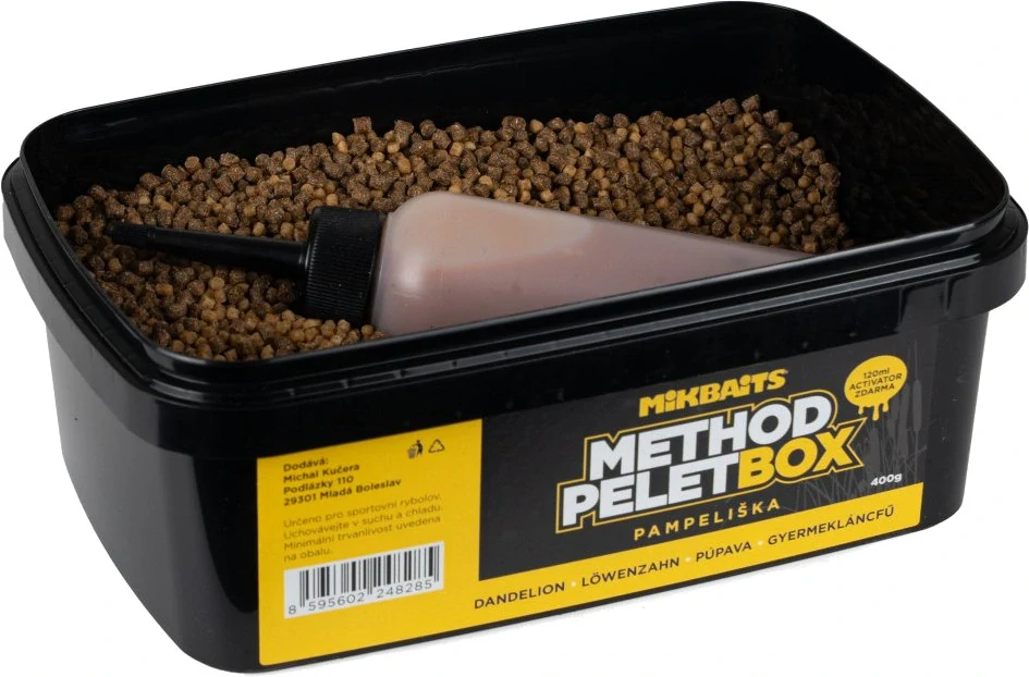 MIKBAITS Method Pellet Box + 120ml Activator Pampeliška 400gSkladem180 Kč/ ks161 Kč bez DPH