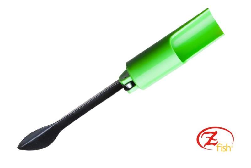 Praktický plastový kloubový držák na prut s kovovou čepelí, který lze zapíchnout do země a odložit do něj prut, na kterém potřebujete provést např. úpravu či výměnu háčku, návazce či nastražit novou návnadu.