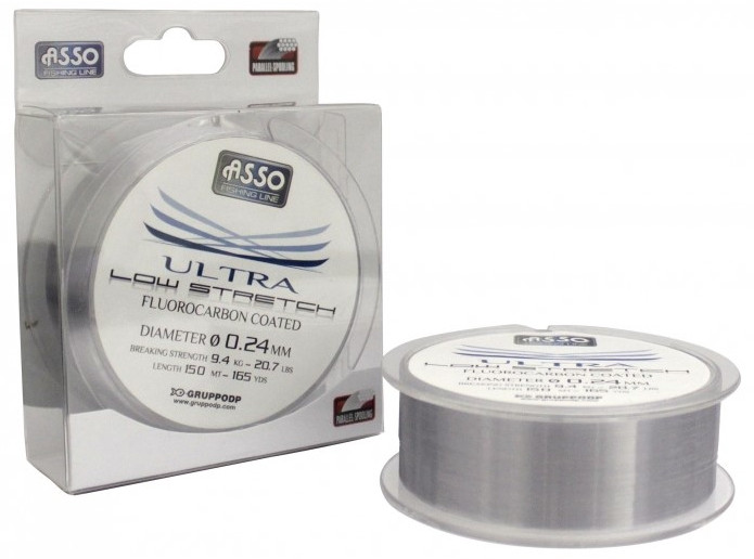 Vlasce Asso Ultra Low Stretch má povrchovou úpravu z fluorocarbonu a díky tomu je téměř průhledný, má velkou výdrž vůči přetrhnutí v tahu a výborný výkon díky novým copolymerům.