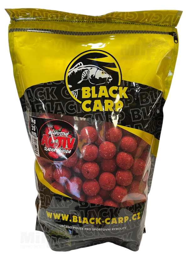 Black Carp Activ Boilies Sladká jahoda - Activ boilies poslouží perfektně, jako nástraha i návnada v kombinaci s jíným krmením, nebo i samostatně. Tyto nástrahy jsou díky technologii zpracování o něco tvrdší, než klasický boilies a tím i odolnější vůči bílé rybě v první fázi po nakrmení.