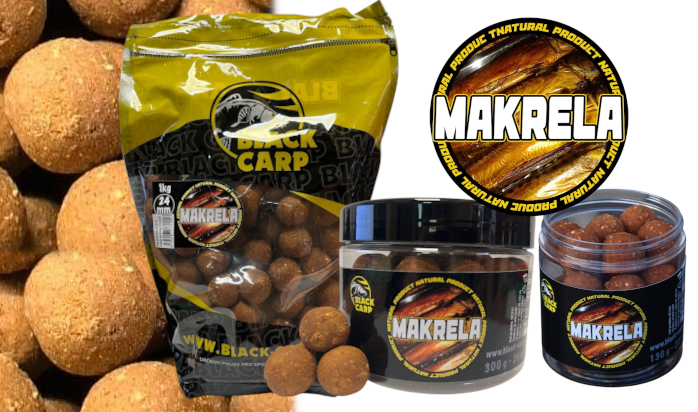 Na tomto boilies Black Carp Makrela jsme si dali opravdu záležet a vývoj probíhal několik sezon. Obsahuje pastu z uzeného masa makrel a vše obohaceno o mix tří esencí a celkem je toto boilies složeno z 26 ti komponentů!