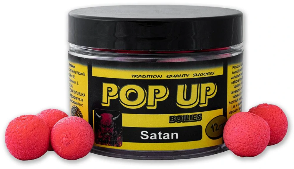 CARP SERVIS VÁCLAVÍK Plovoucí boilies Pop up boilies Satan 50g 12mmSkladem139 Kč/ ks124 Kč bez DPH