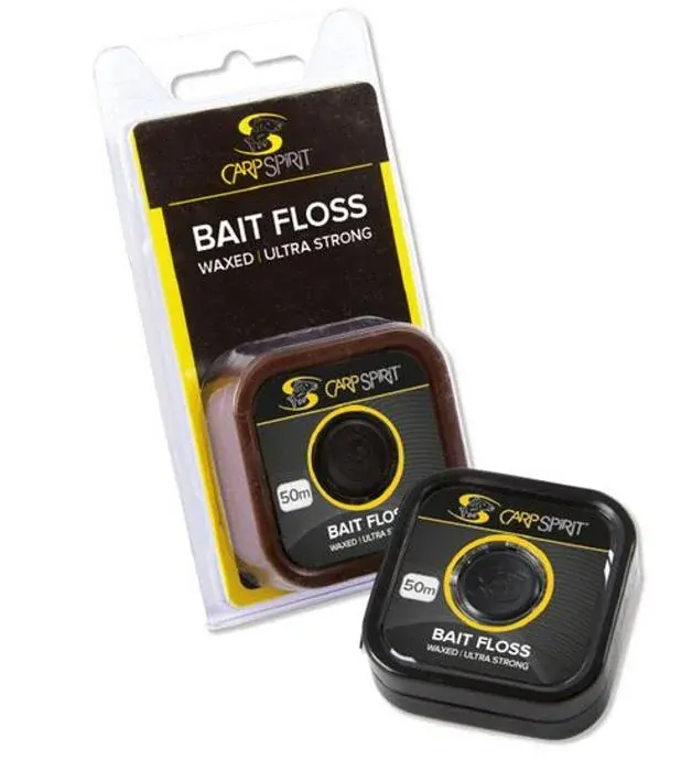 CARP SPIRIT Bait Floss 50m je plochá, pevná a voskovaná nitka pro jednoduché připevnění nástrah typu pop-up, wafters nebo kombinací tzv. „na panáčka“.