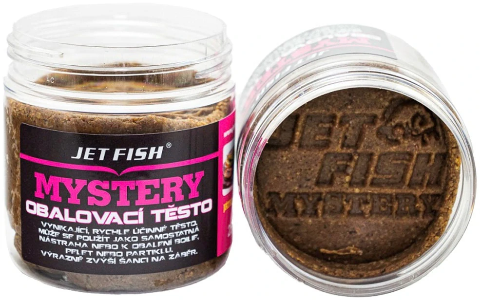 Obalovací těsto Jet Fish MYSTERY je vynikající a rychle fungující nástraha. Používá se buď jako samostatná násraha, nebo k obalování boilie, pelet, partiklů atd., a nebo je také možné vyrobit z těsta kuličky a uvařit z nich boilie.