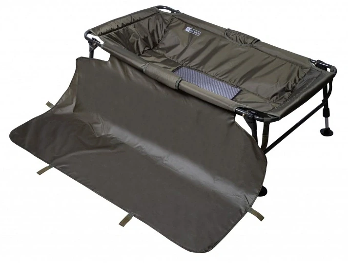 Mimořádně pečlivě vyrobená kaprová podložka s 4 nastavitelnými nohami, odtokem vody, víkem a přepravním vakem. Zesílený rám a zvětšené rozměry jsou ideální pro velké kapry.