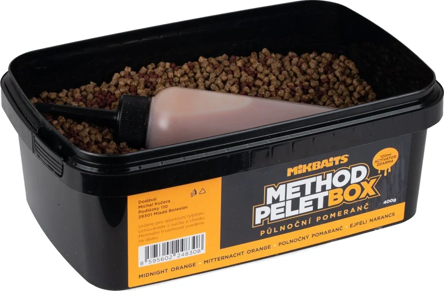 MIKBAITS Method Pellet Box + 120ml Activator Pulnoční pomeranč 400gSkladem180 Kč/ ks161 Kč bez DPH
