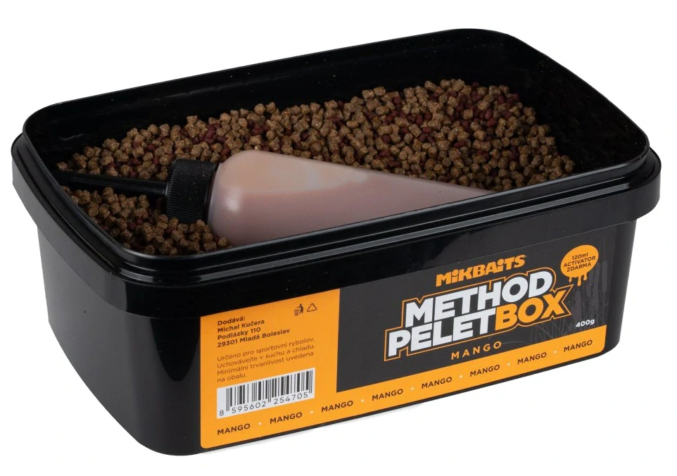 MIKBAITS Method Pellet Box + 120ml Activator Mango 400gSkladem180 Kč/ ks161 Kč bez DPH