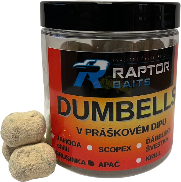 RAPTOR BAITS Dumbells v praškové dipu Apač koření 250ml