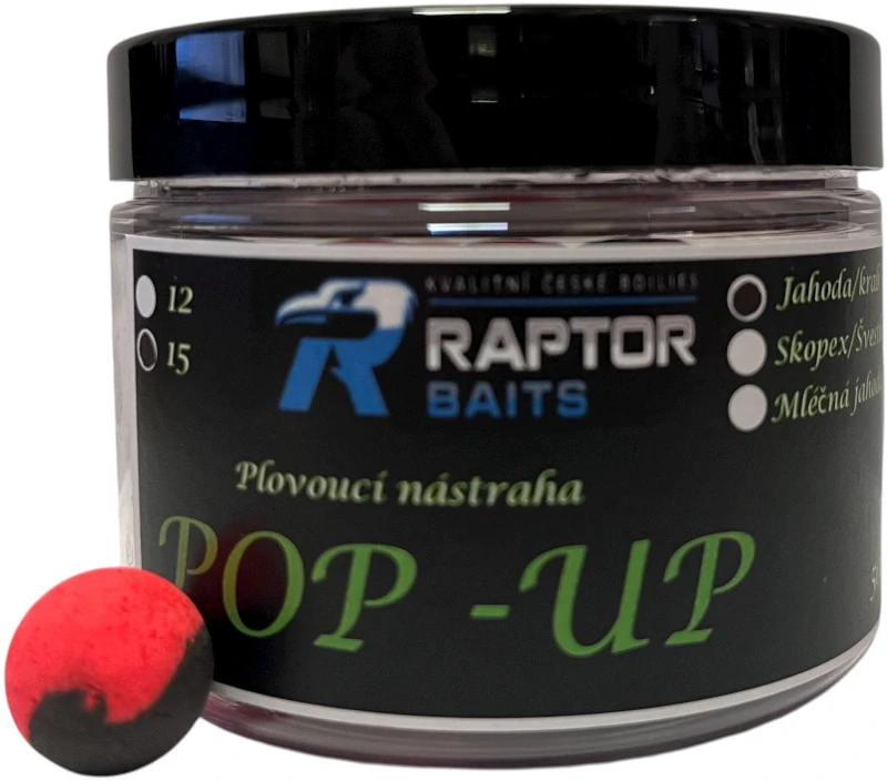 RAPTOR BAITS PLOVOUCÍ BOILIES POP UP DUO 50g 15mm - JAHODA / KRAB
