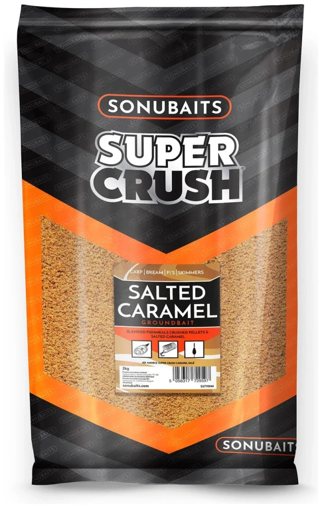 Úžasná směs Salted Caramel drcených pelet, sladkých sušenek s přídavkem rybí moučky, soli a karamelové příchuti. Slaný karamel se dodává ve špičkové 2kg řadě krmení Supercrush od společnosti Sonubaits a hodí se pro všechny styly rybolovu.