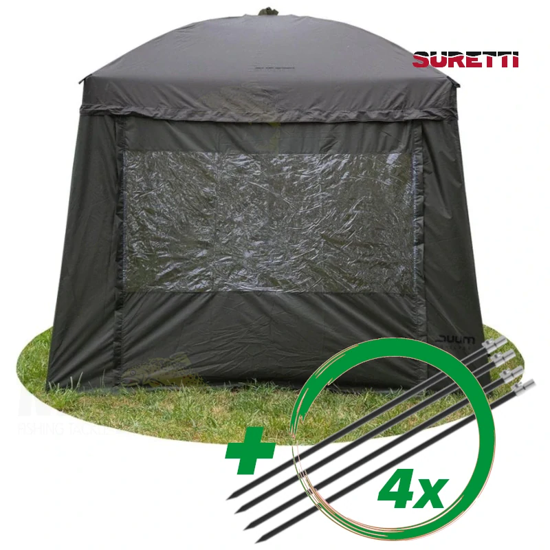 Speciální akční set rybářský deštník Suretti DUUM 250 Full Cover + sada 4ks teleskopických tyčí 100cm Whitworth 3/8"x20, pro ještě lepší využití deštníku.