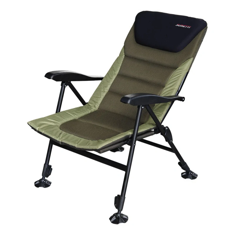 Polstrovaný potah z polyesteru 600D je nejen skvělý na pohled, ale také poskytuje maximální pohodlí, které je umocněno loketní opěrkou a nastavitelným opěradlem. Čtyři individuálně nastavitelné nohy umožňují umístění křesla i na tom nejnerovnějším terénu a rozměry matrace zajišťují, že vaše tělo bude mít plnou oporu pro pohodlí i při dlouhých sezeních.
